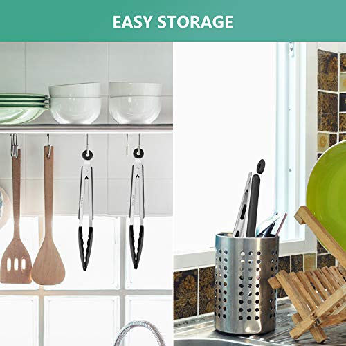 - ✅【Embedded Design for Durability】The embedded design of these tongs combines the silicone tips with the stainless steel handle perfectly and provides the best grip and control without bending or breaking. They are built to last for good value as the must-have kitchen accessories.