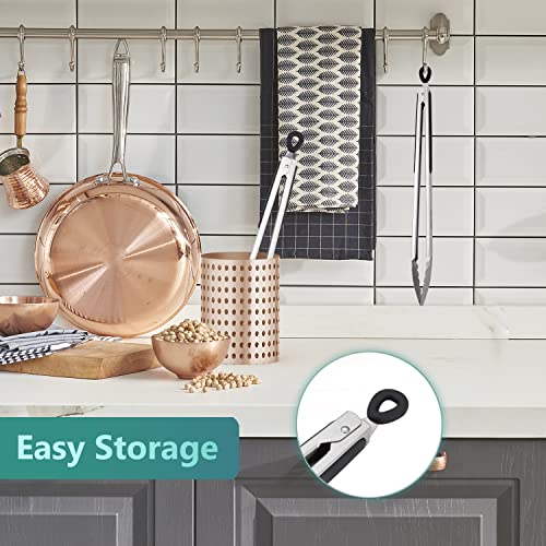 - ✅【Non-Slip & Heat-Resistant】The non-slip silicone grips are heat resistant up to 480°F and offer a secure thumb rest that ensures a comfortable and controlled grip. The stainless steel tong heads are super heat resistant, so you can use them to handle hot food without worrying about melting or warping.