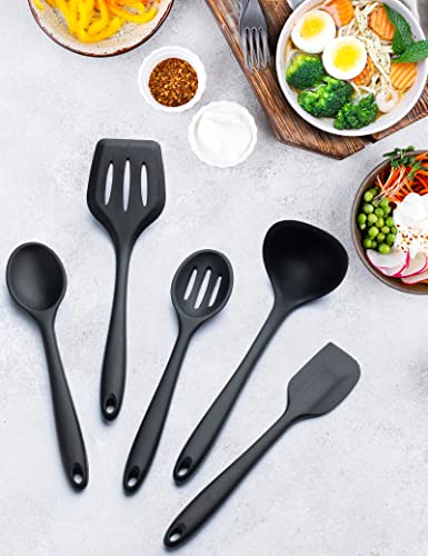 5PCS Silicone Kitchen Utensils Set - Silicone Spatula/Turner/Serving Spoon/Soup Ladle/Slotted Spoon